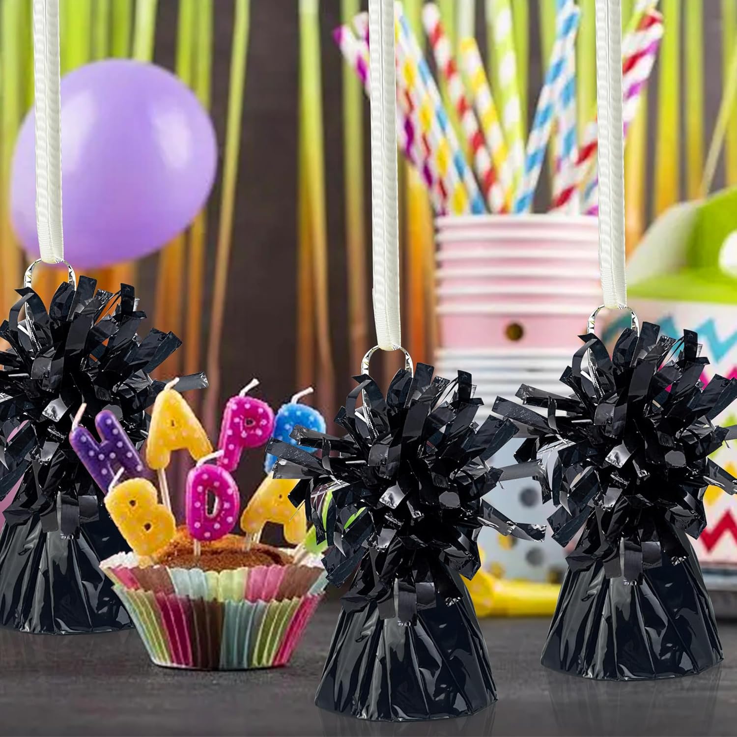 16 PCS Metallic Wrapped Balloon Weights Black Heavy Balloon Weight for Balloons Birthday Party Table Centerpiece Decorations (Black)