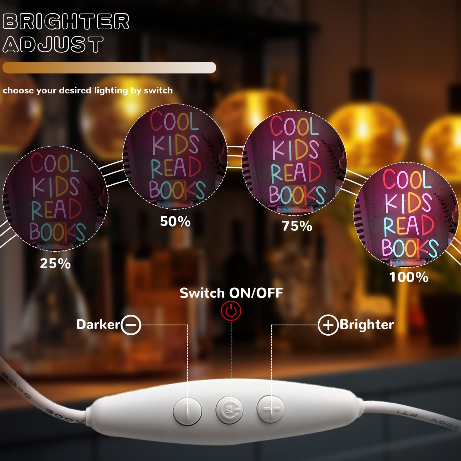 - Dimmable LED signs: Letter Reading neon sign for classroom come with a dimmer switch, featuring intuitive UP and DOWN buttons to effortlessly adjust the brightness of the neon lights to make simple life more colorful and interesting