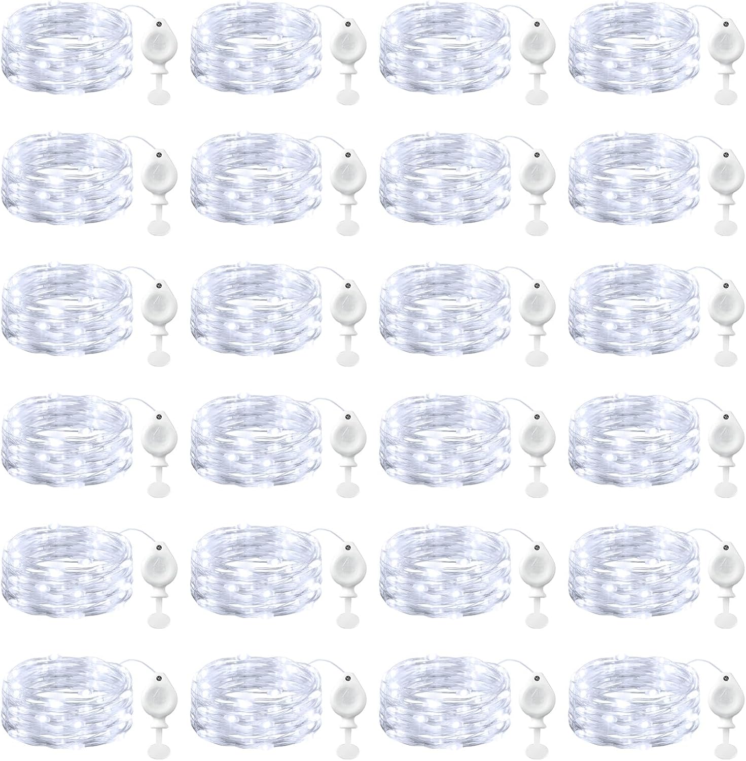 Brightown 24 Pack White LED Fairy Lights Battery Operated String Lights, 7ft 20LED Waterproof Silver Wire String Lights, Firefly Starry Moon Lights for Mason Jars DIY Christmas Wedding Party Bedroom