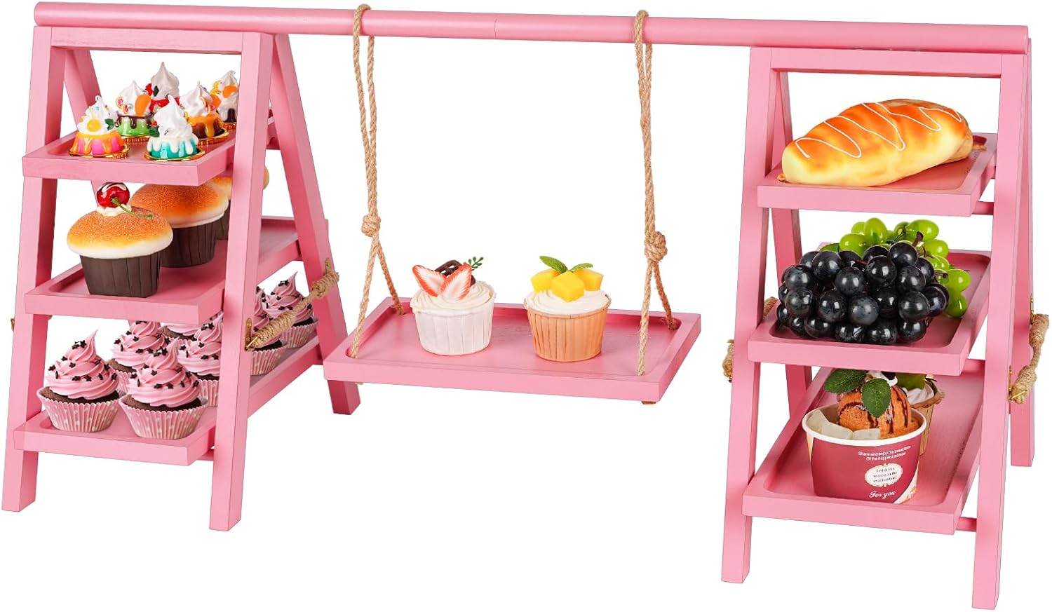 Wooden Cupcake Stand, 3 Tier Cupcake Display Stand for Dessert Display, Dessert Stands with Serving Tray and Foldable Stand for Party, Birthday, Wedding, Events, Baby Shower (Pink)