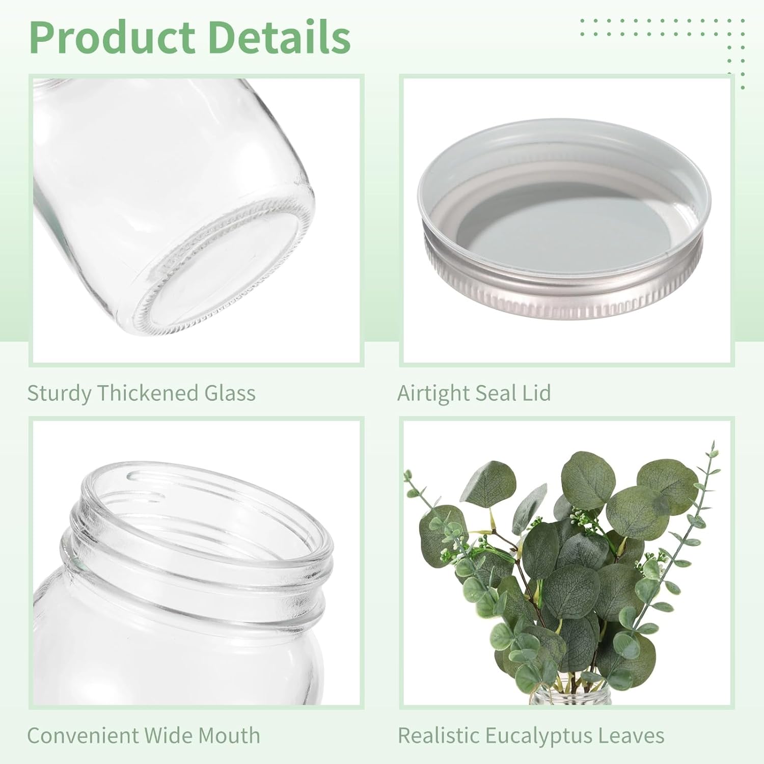 - Just Right Size Easy Styling: each jar about 3.15 x 5.24 inches proportioned for table centerpiece windowsill mantel or bathroom shelf simple to arrange as floral centerpieces for tables