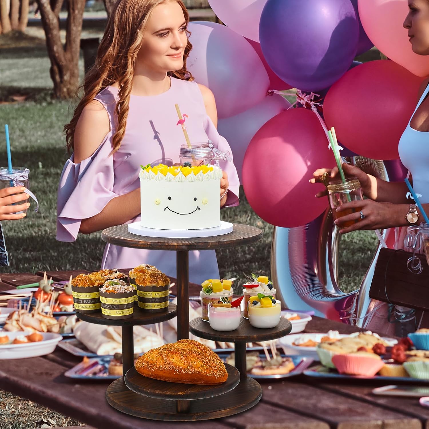 - 【Versatile Use】Wooden cup cake tower stand suitable for wedding cake tower, bridal shower candy bar, breakfast pastry station, Anniversary floral centerpiece. The dessert stands can display many kinds of food, such as cupcakes, cake, cookies, fruits, bread, candies, pies.