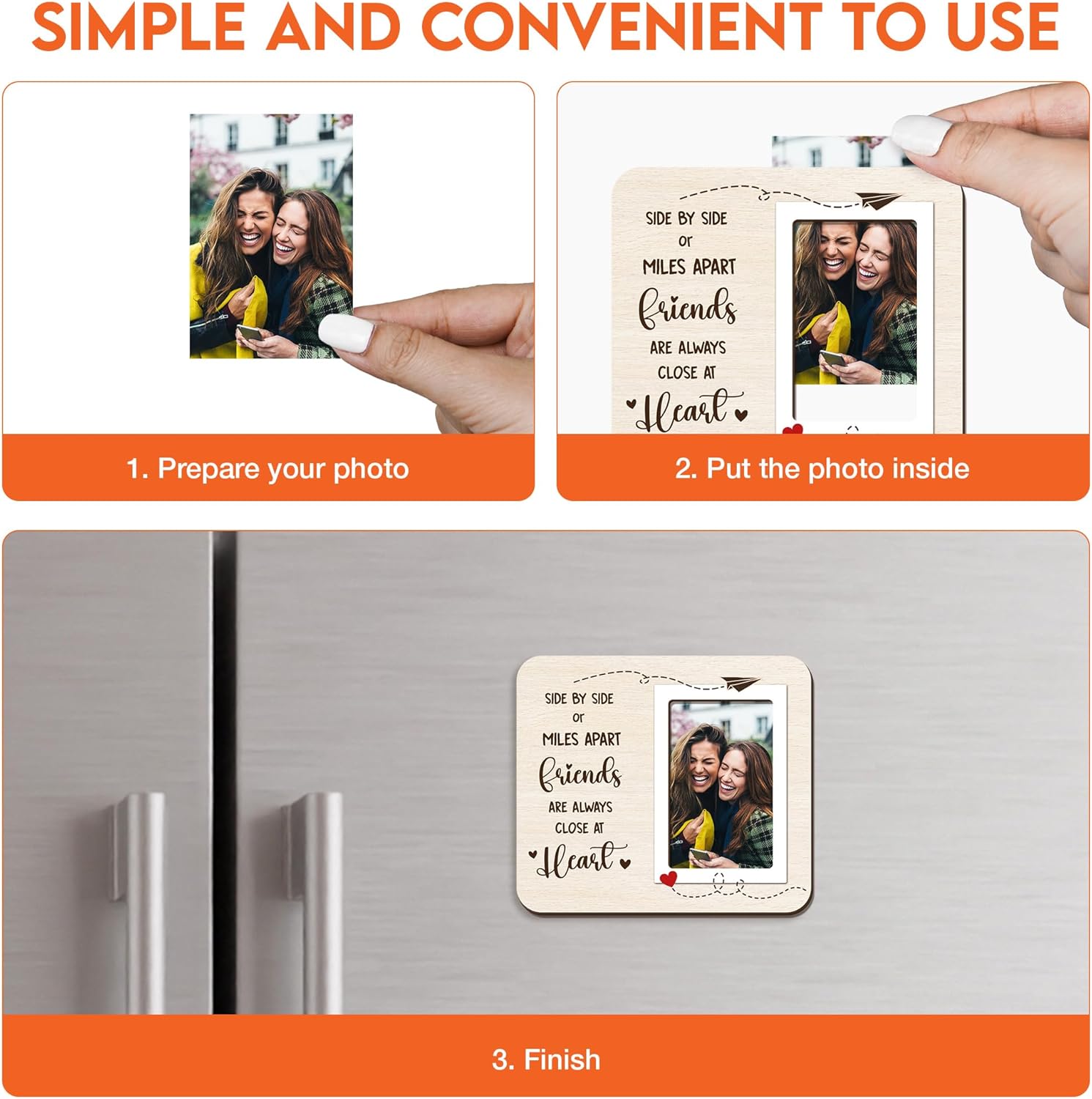 - 🌍 Long-Distance Friendship Gift – With the message 'Side by Side or Miles Apart, Friends are Always Close at Heart,' these magnetic picture frames are perfect for celebrating enduring friendships.