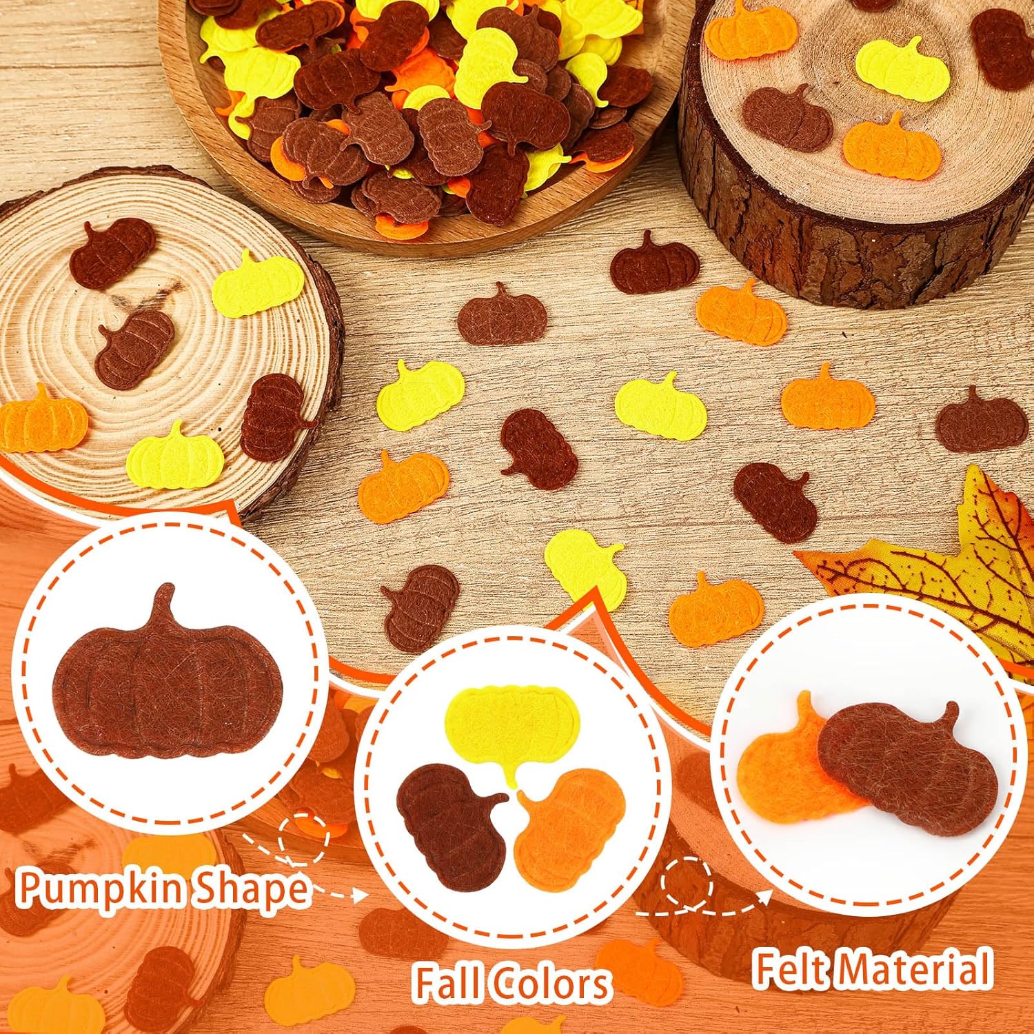 - Premium Felt Material: Our autumn confetti is crafted from soft, reliable felt fabric, offering a cozy touch and long-lasting vibrancy. The Thanksgiving confetti can withstand wear and fade, these fall confetti for table maintain intact form and vivid colors, making the pumpkin confetti ideal for repeated seasonal use