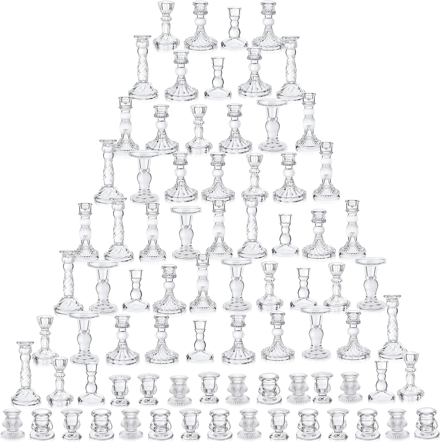 - Package Contents: you will receive 80 pieces 10 style glass candle holders in different sizes, which have different heights, smooth shapes and smooth finishes; The candlestick holder adds a clean, and elegant aesthetic to any space, it is suitable for a variety of candles