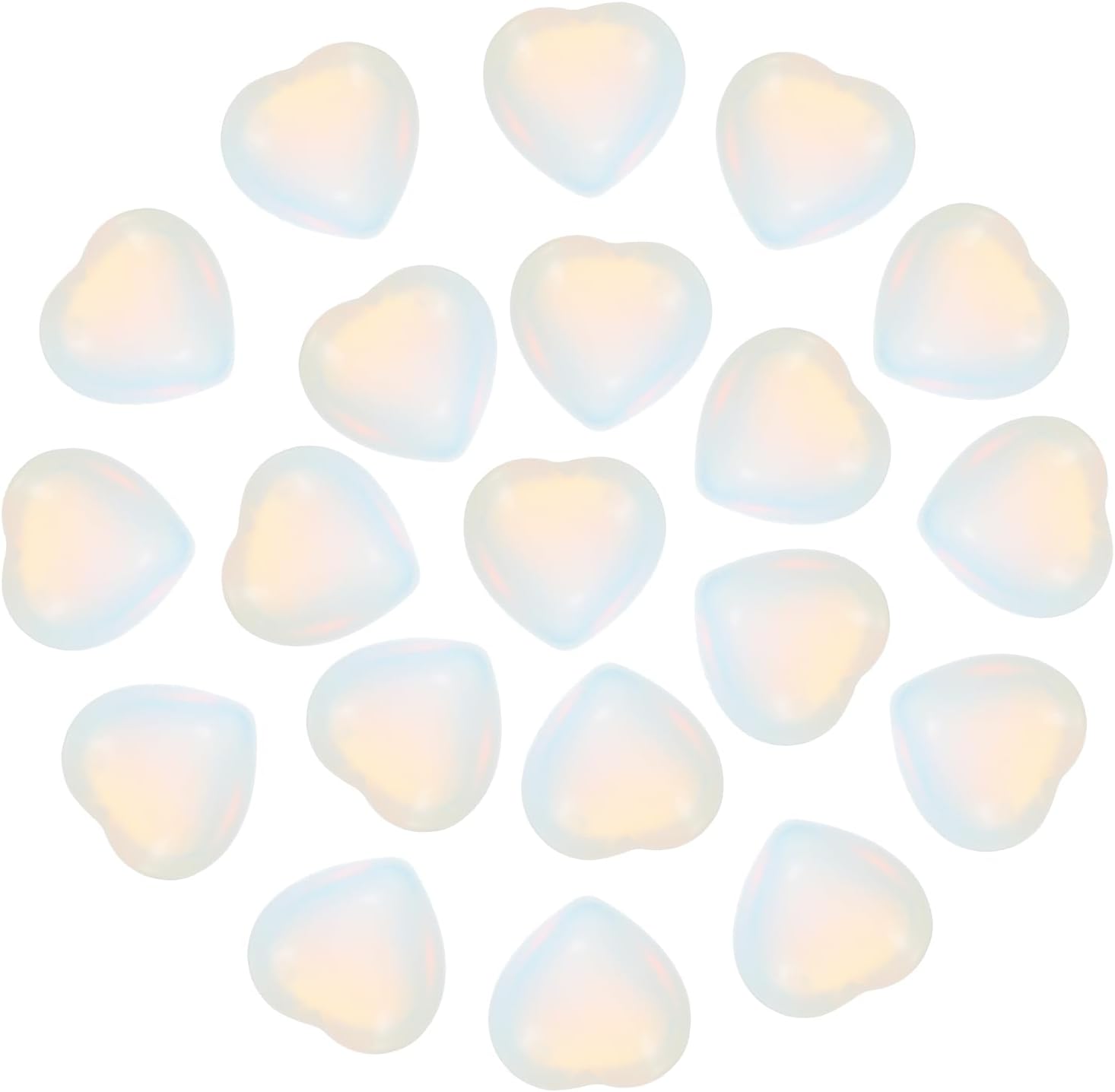 PATIKIL 20 Pcs Natural Heart Shaped Crystal Stone, 0.6 Inch Mini Polished Love Gemstone Crystal, Pocket Rock Engraved Worry Stones for Women Gifts Meditation, AB White