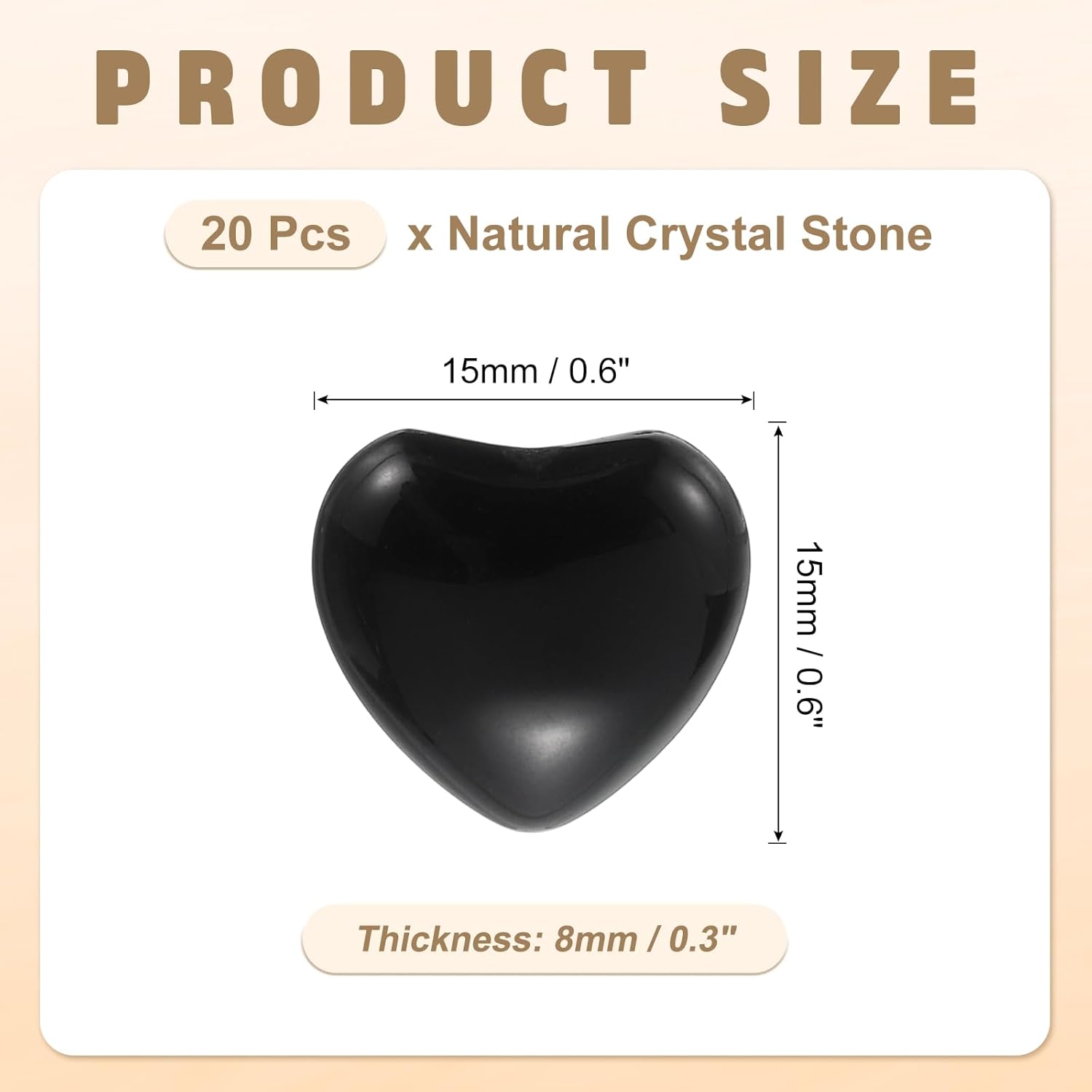 PATIKIL 20 Pcs Natural Heart Shaped Crystal Stone, 0.6 Inch Mini Polished Love Gemstone Crystal, Pocket Rock Engraved Worry Stones for Women Gifts Meditation, Black