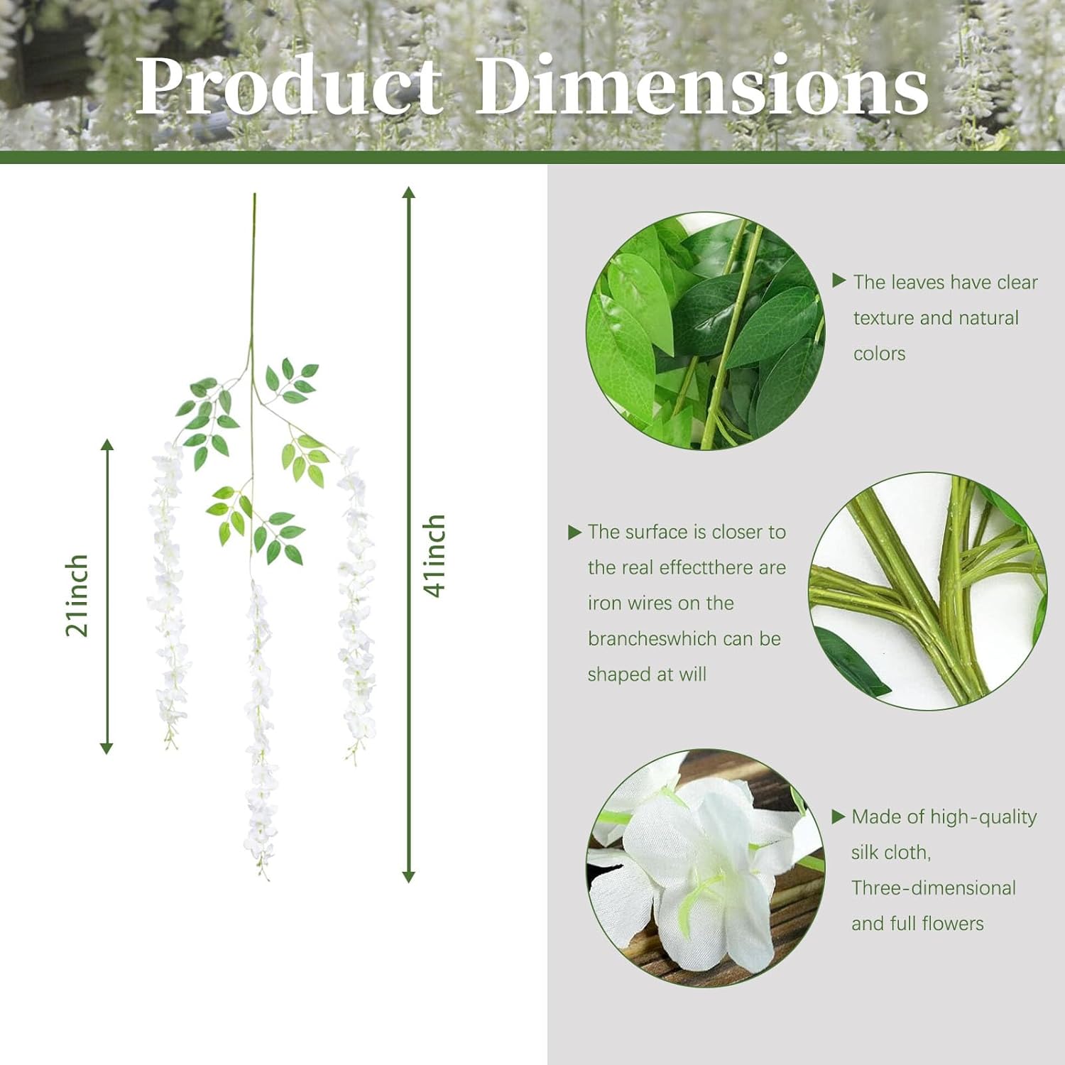 - 【Cycle Used】The white artificial wisteria garland is made of silk, the stem is made of metal wire and plastic, and it can be easily bent and recovered, so you can use it many times, very environmentally and cost-effective.