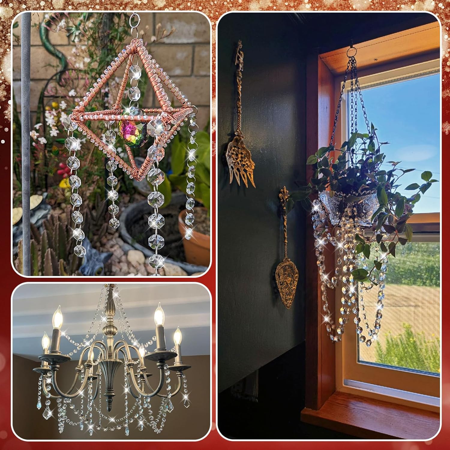- 【Product Include】You will receive 10 pcs of crystal garland strands. The clear octagon bead is 14mm each; The metal split ring is 12mm each; The teardrop crystal is 30mm x 15mm; total 10 Strings, one string is 3.3ft long; the total length of the crystal garland strands is 33ft. The crystal octagon beads are connected by metal split rings and are easy to disassemble, so you can adjust the length according to the decoration needs.