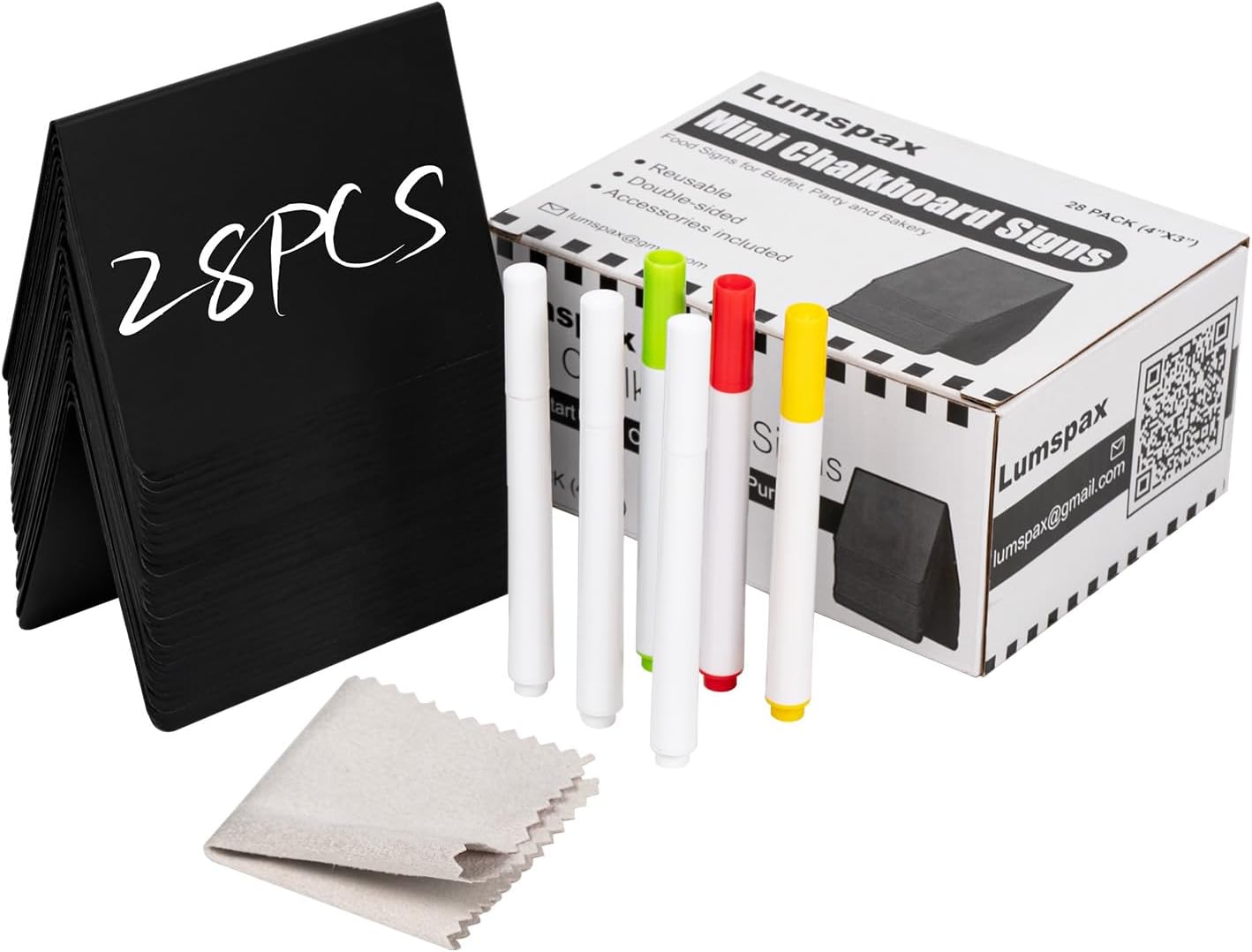 - Great Value Combination:Get 28 reusable mini chalkboard signs, 6 liquid chalk markers, and 1 cleaning cloth—all in one incredible set that delivers maximum value for your money
