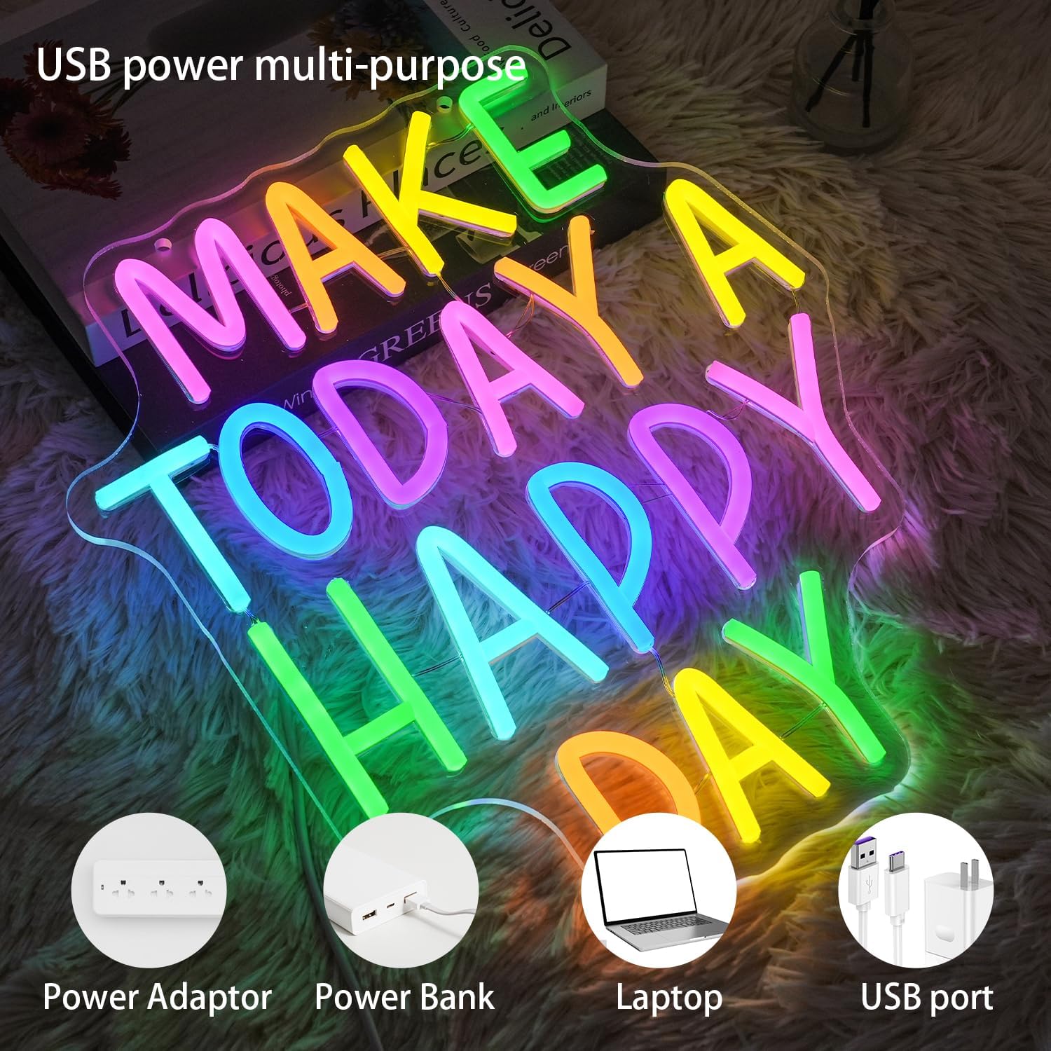 - Unique Design: Inspirational neon sign features the bold colorful letters " Make Today A Happy Day", When the Motivation neon light is lit, neon wall sign will emit a gentle warm light, giving viewer good expectations for the new day