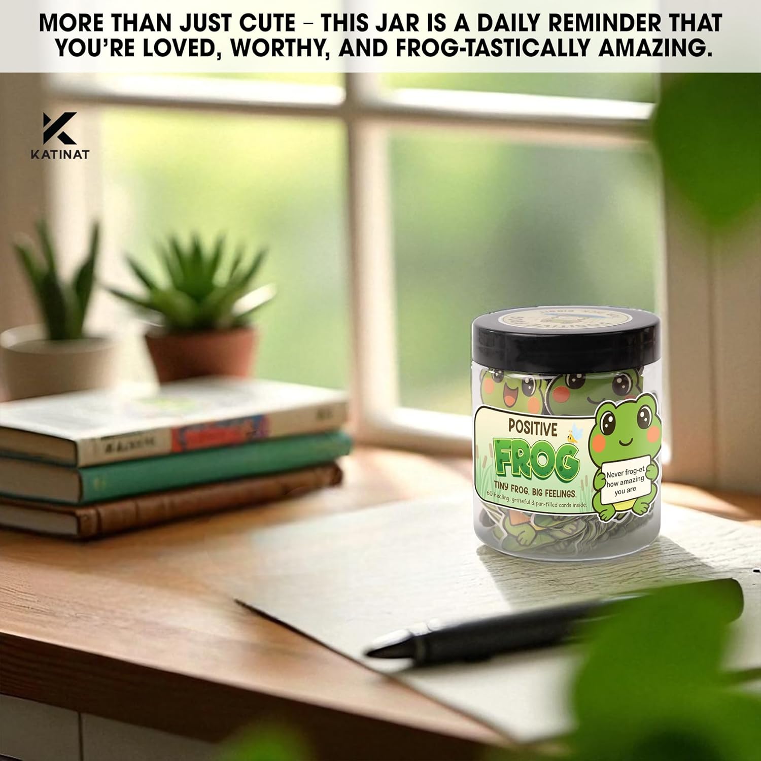 Positive Frog Jar โ Thank You Gifts for Women, Men, Coworkers โ Emotional Support Jar with 60 Notes โ Appreciation Gifts for Coworkers, Teacher, Nurse, Retirement Gift for Men, Women, Frog Gift