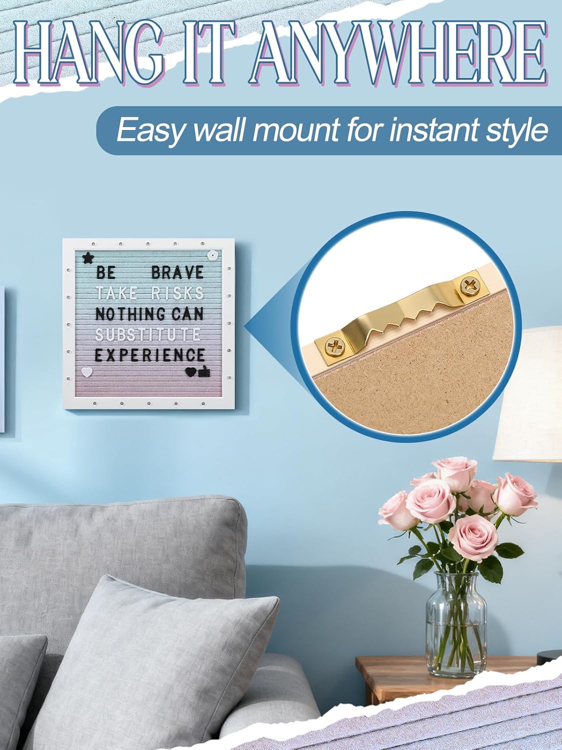 Light up Changeable Felt Letter Board Sign with LED Lights - 10×10" Message Board & Wood Stand & 450 Letters, for Halloween/Birthday/Event/Pregnancy/Baby Announcement/Home Wall Decor Gifts, Gradient