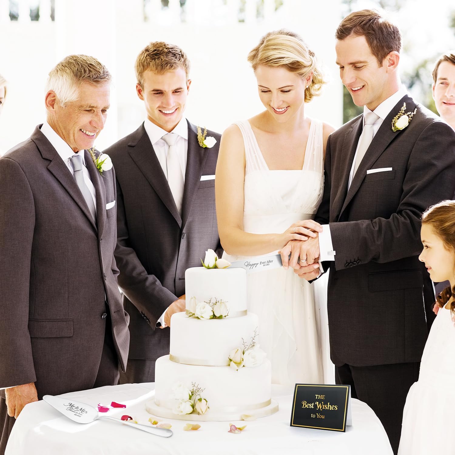 - 【Exquisite Craftsmanship】This wedding cake cutting set is made of premium food-grade stainless steel with a polished mirror finish, making it rust-resistant, corrosion-resistant, and durable. The ergonomic design combined with a sturdy structure ensures a comfortable grip and easy handling. Built to last, this elegant set can also be kept for years as a meaningful keepsake."