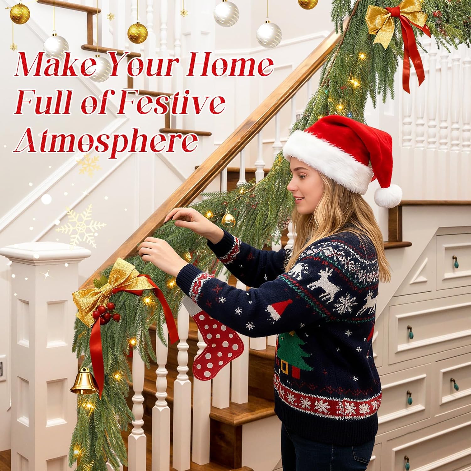 - GENEROUS LENGTH: Measuring 6 ft long, this Christmas garland provides ample length to cover large areas, whether draped over a mantle, around a porch, or used as a centerpiece on your dining table. Its flexible design allows you to easily adjust and arrange it to create your nice holiday scene.