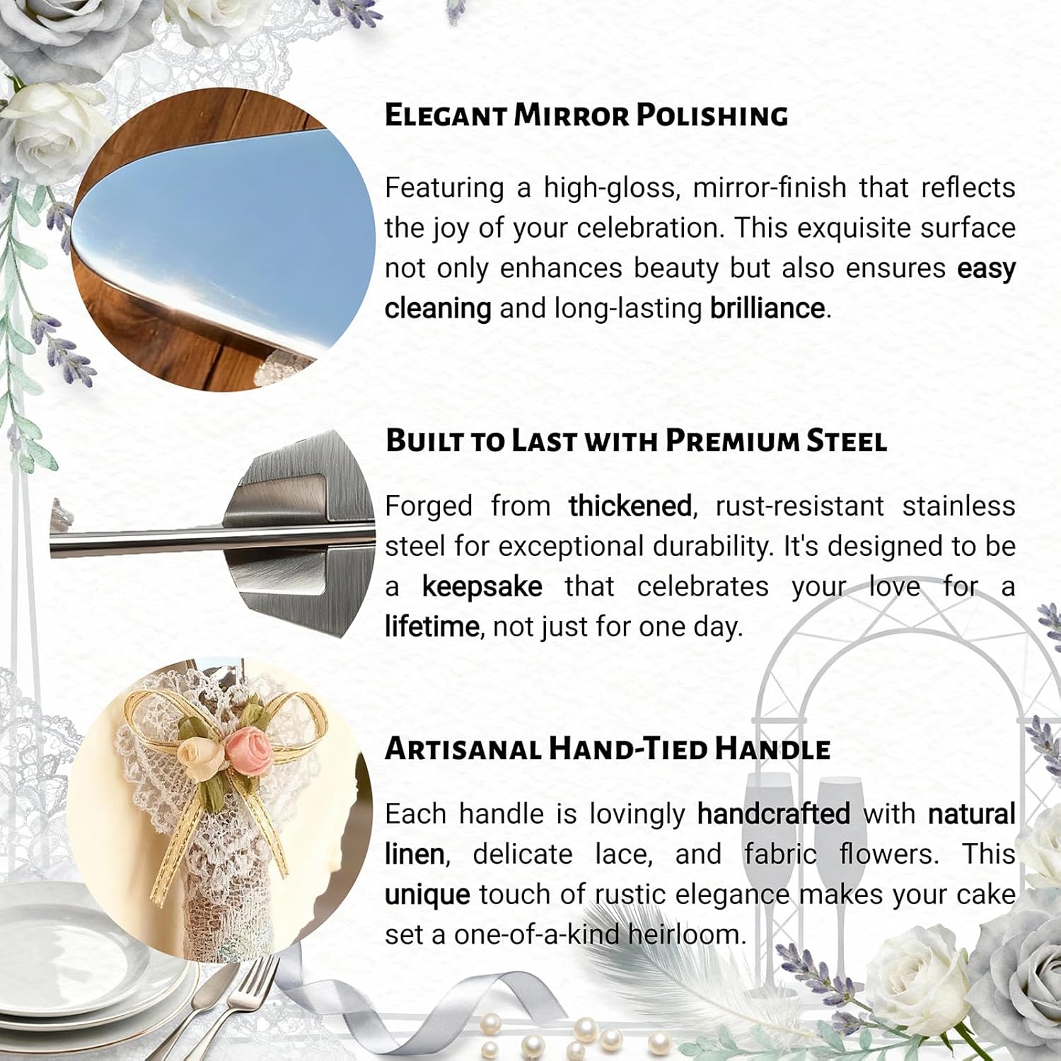 Wedding Cake Knife and Server Set – Rustic Lace Burlap Handle, Stainless Steel Blades, Vintage Wedding Cake Cutting Set for Bride & Groom, Anniversary, Engagement Gift