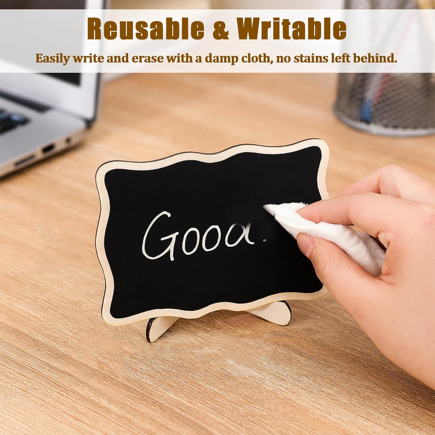 - Reusable Writable Chalkboard Tags: Effortlessly write and erase on these mini chalkboard signs with a damp cloth, leaving no stains or residue behind. Perfect for repeated use