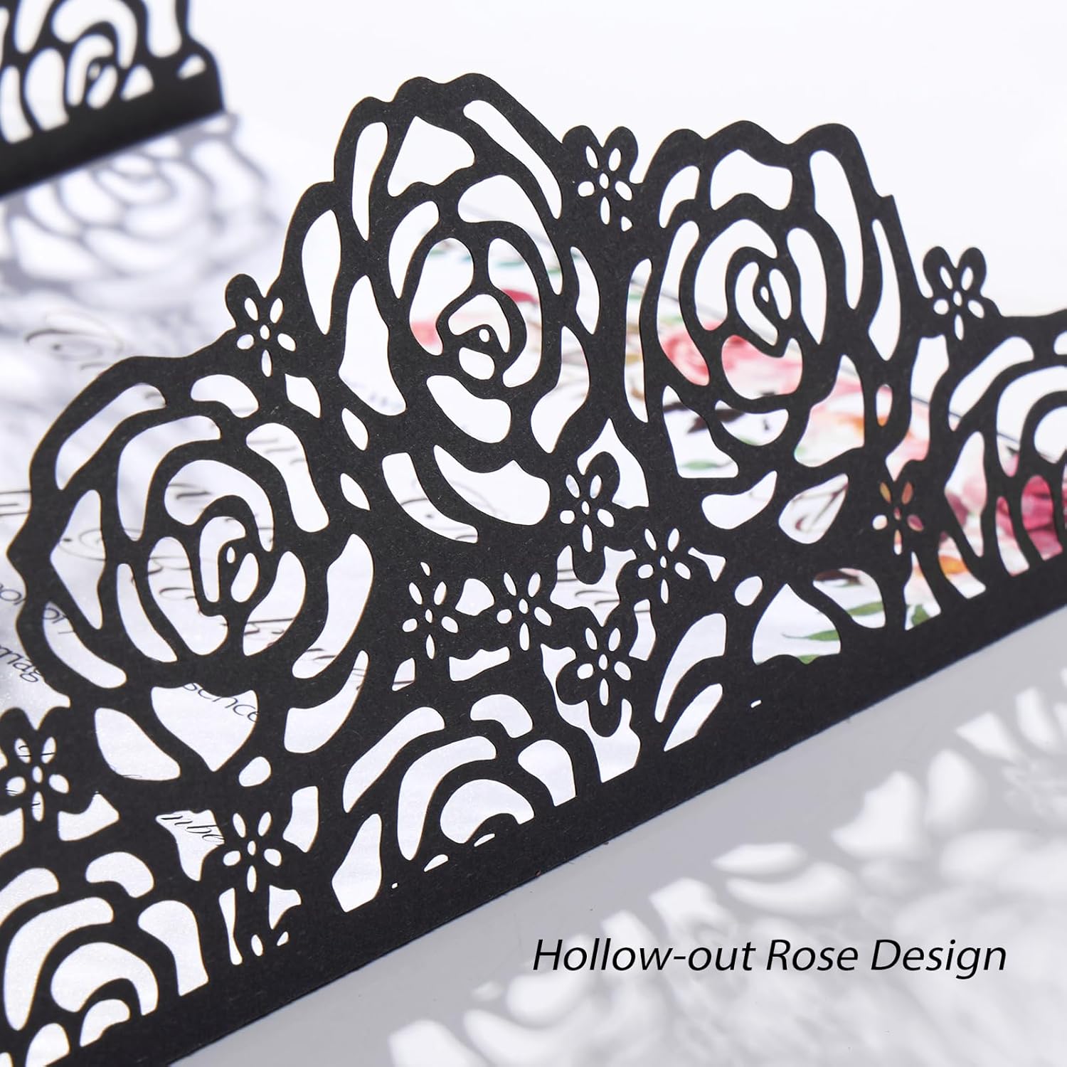 50pcs Black Wedding Invitation Kit Butterfly Laser Cut Invittations Pocket with Blank Inner Sheets and Envelopes for Wedding Anniversary Quinceañera Birthday Party Invites 4.9x7''
