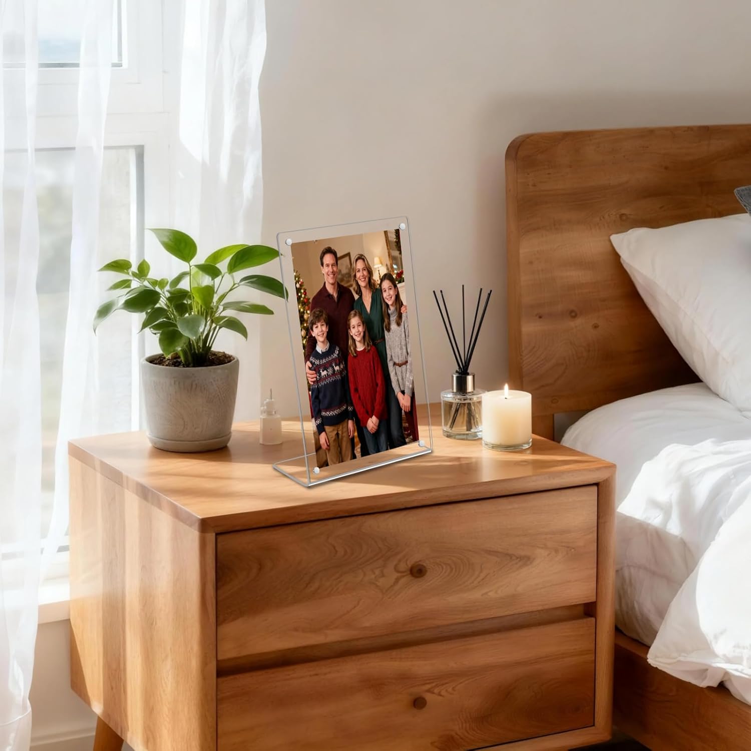 6 Pack Acrylic Picture Frame 5x7 inch, Magnetic Photo Frames, Clear Slanted Back Acrylic Frameless Transparent Frame for Desktop Display, Standing Photo Display Holder Gift for Home, Office