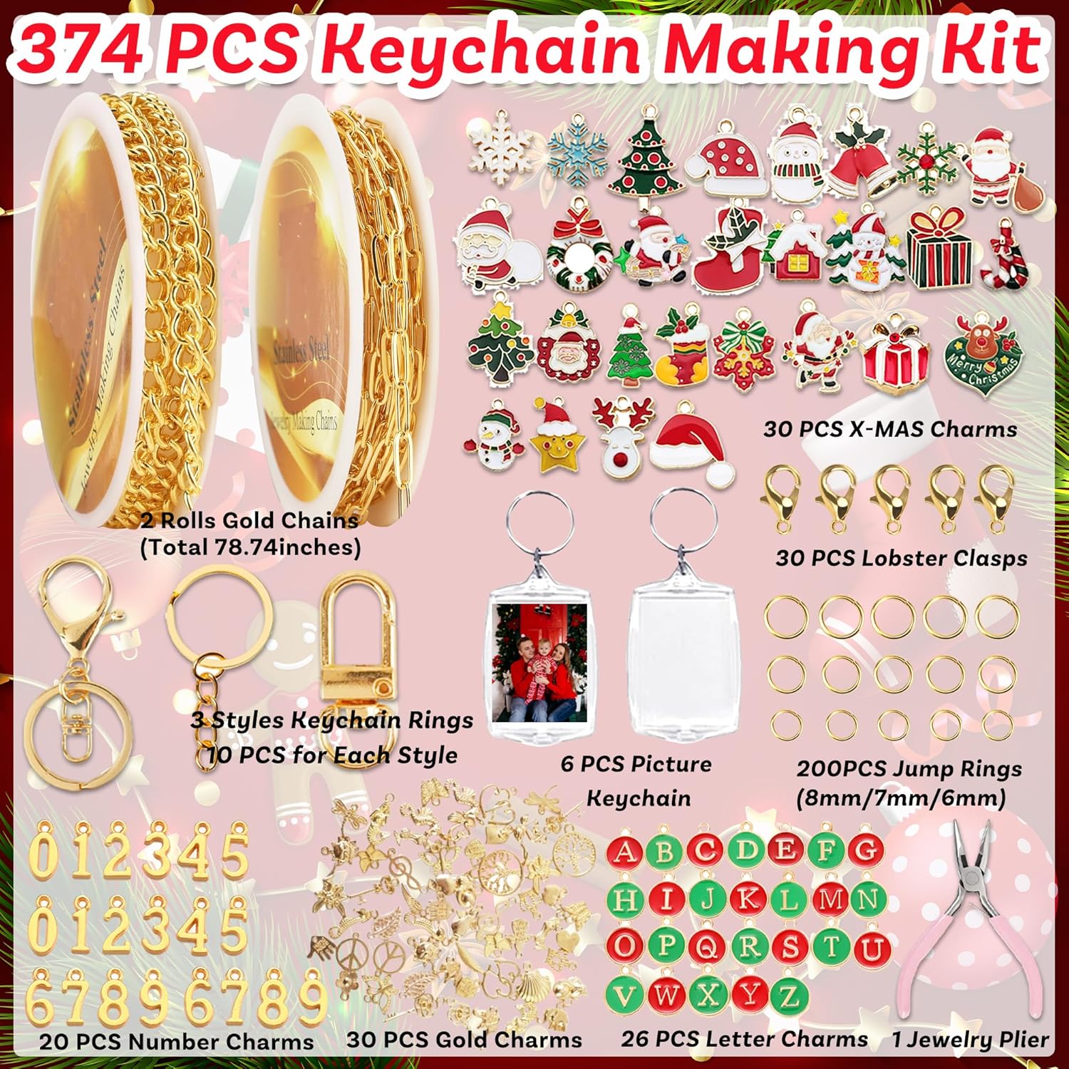 Namifin 374 Pcs Christmas Keychain Making Kit with Charms & Keychain Clips - DIY Bag Charms, Pearl Keychains, Photo Keychains, Personalized Gifts for Friends Small Business