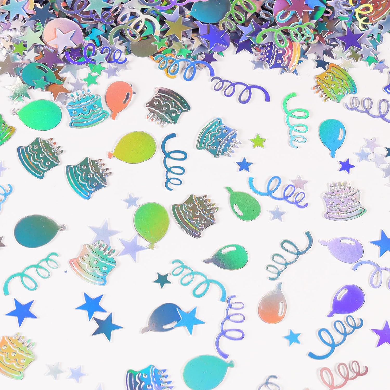 - Classic Design: Confetti contains various elements of the birthday, including swirls bottles goblets balloons cakes and stars, and their sparkling foil materials and colors perfectly match the happy and joyful theme of the birthday party