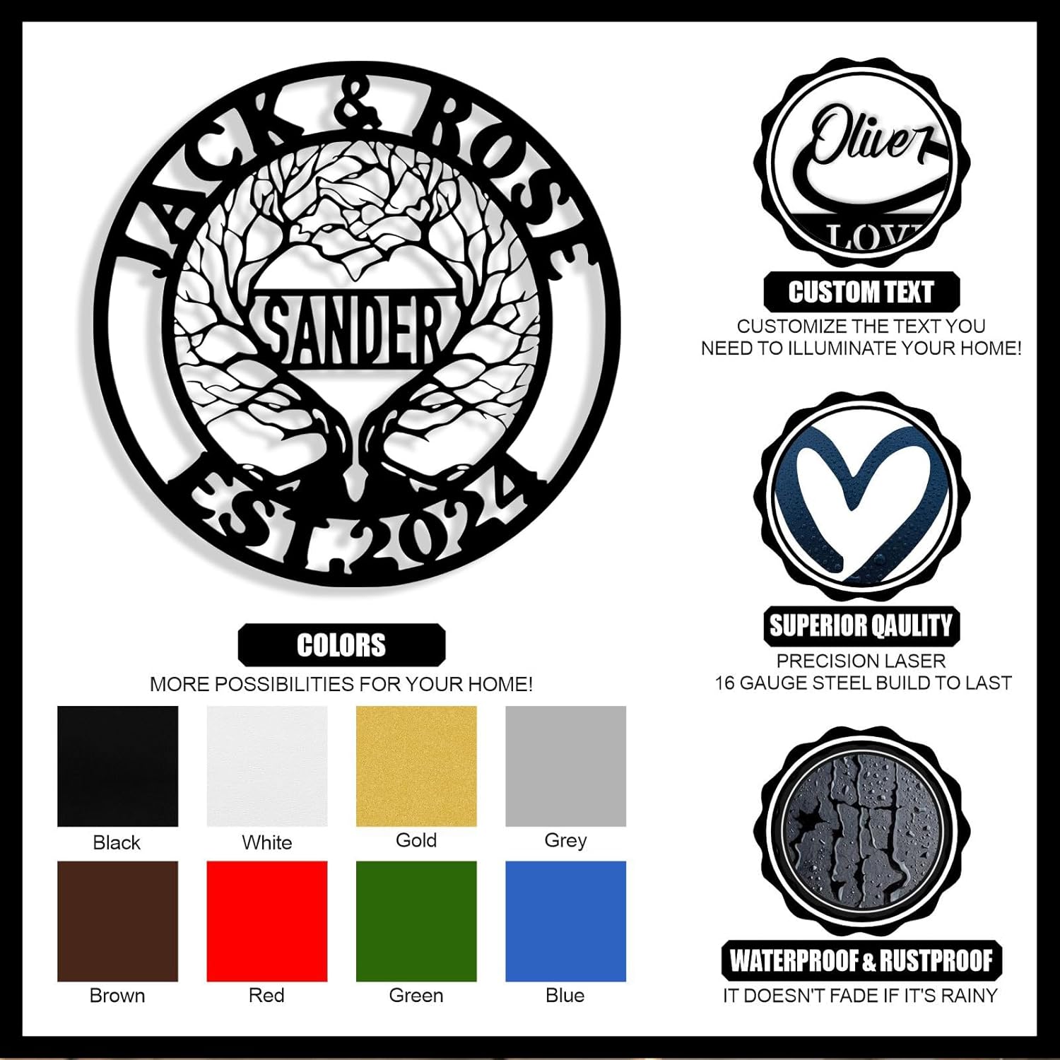 - Personalized & Name Customizable -- Click "CUSTOMIZE NOW" and enter the name or text. Our personalized Tree of Life Metal Sign designs make it unique, beautiful and elegant to create a perfect personalized family name sign for you. This custom last name sign is customized with your last name, first names and established date, will look beautiful indoor and outdoor any home.
