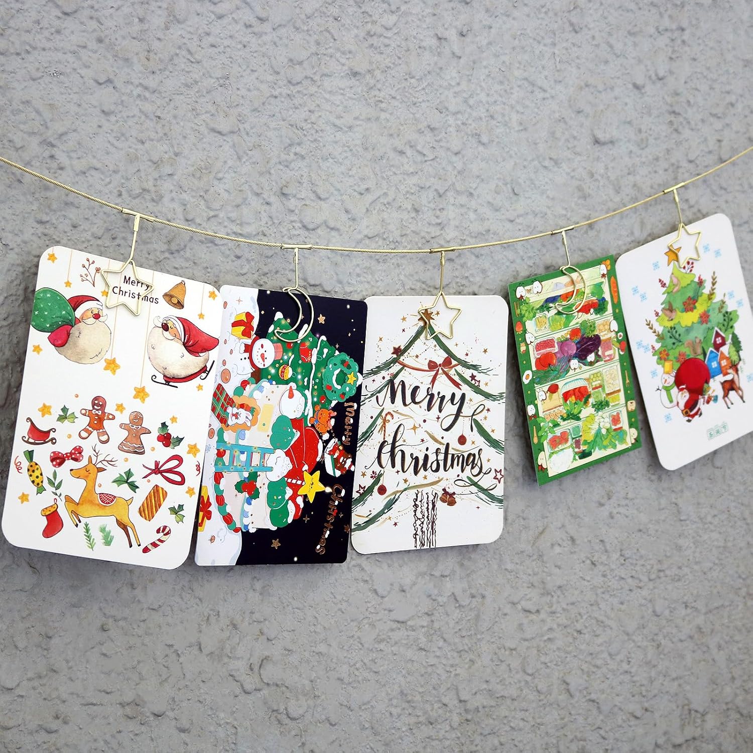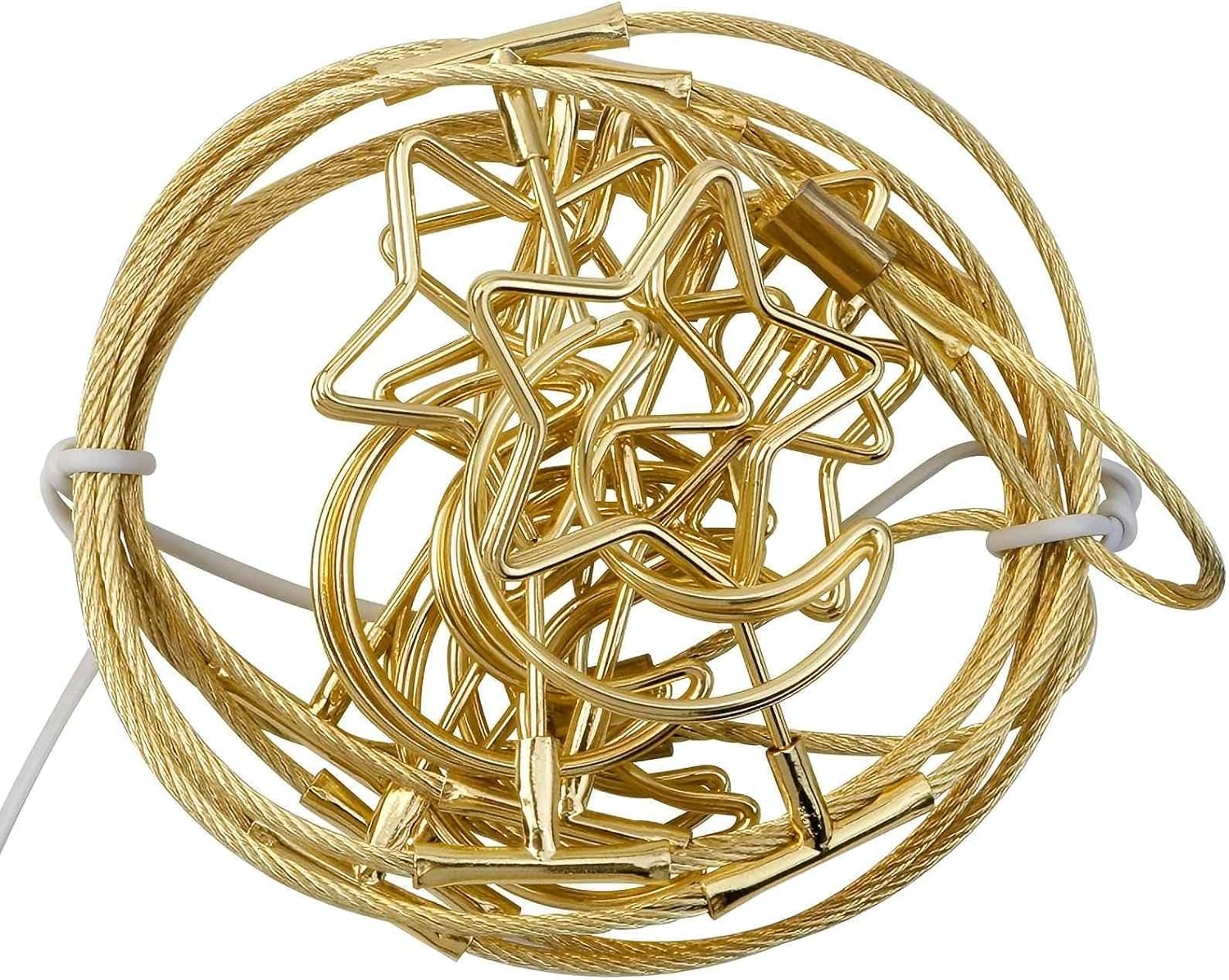 2 Pack Chain Photo Clip Hanging Photo Display Wall Photo Display Metal Photo String with 12 Clips Wall-Mounted Picture Holder for Hanging Painting Family Photos Artworks(Gold-Star and Moon)