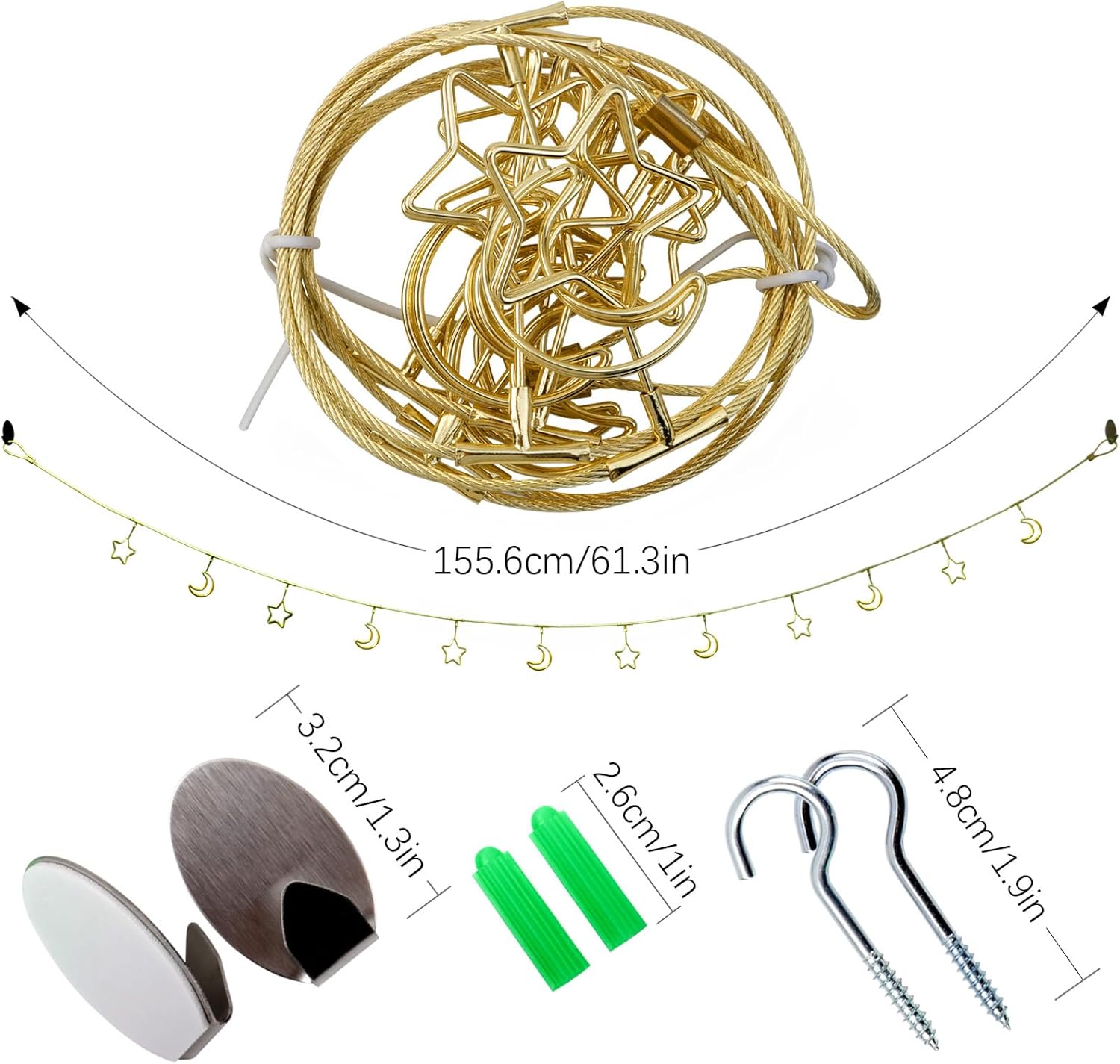 - 【Size】Total hanging photo display string length: 1.55 m/ 5.1 feet.