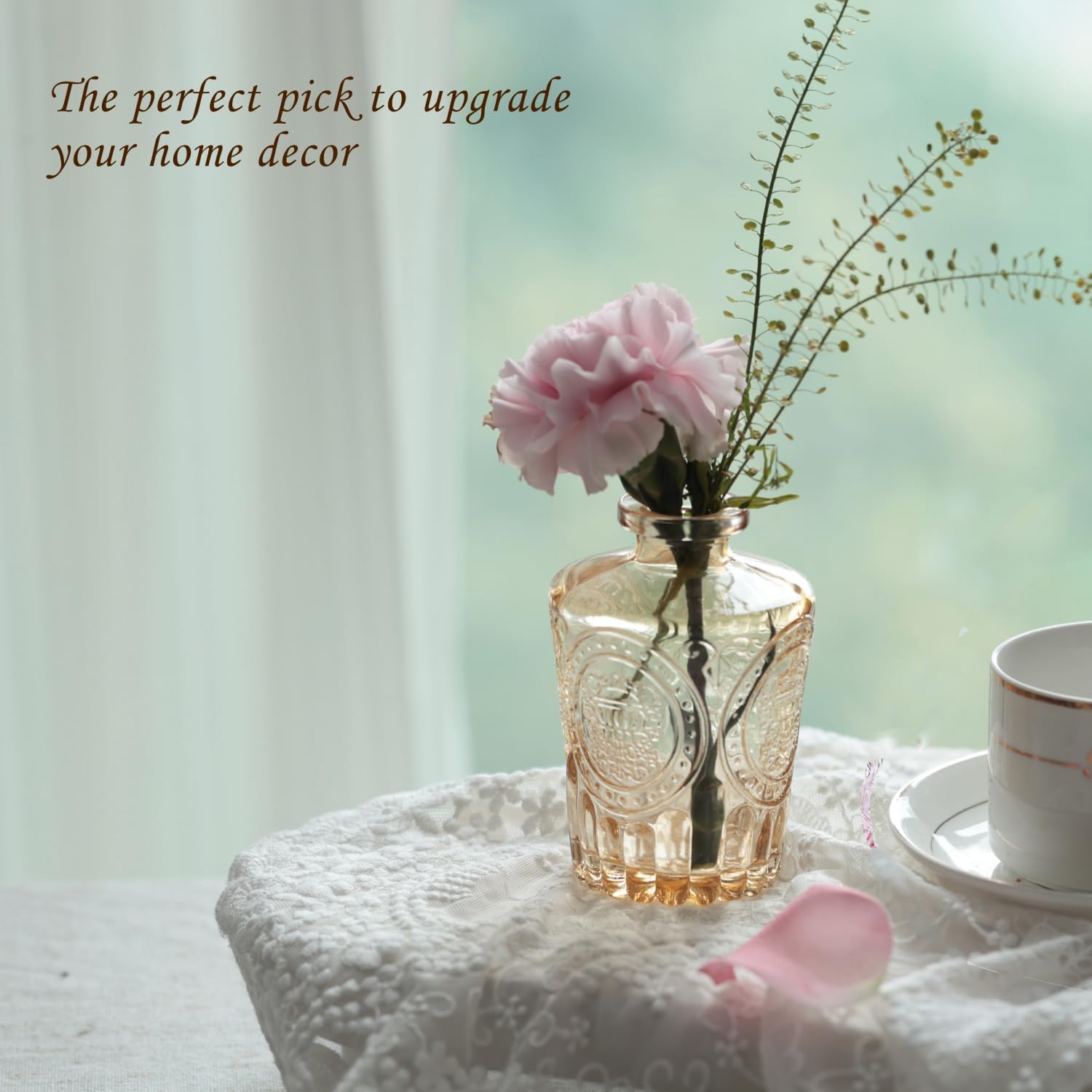 - Bud Vases for Centerpieces: You get 40 pcs green bud vases, each small glass vase is decorated with etched patterns to further enhance its attractiveness. These flower vases boast a vintage design, equally suited for elegant centerpieces and casual home decor, perfect for displaying on windowsills, dining tables, or wedding reception displays