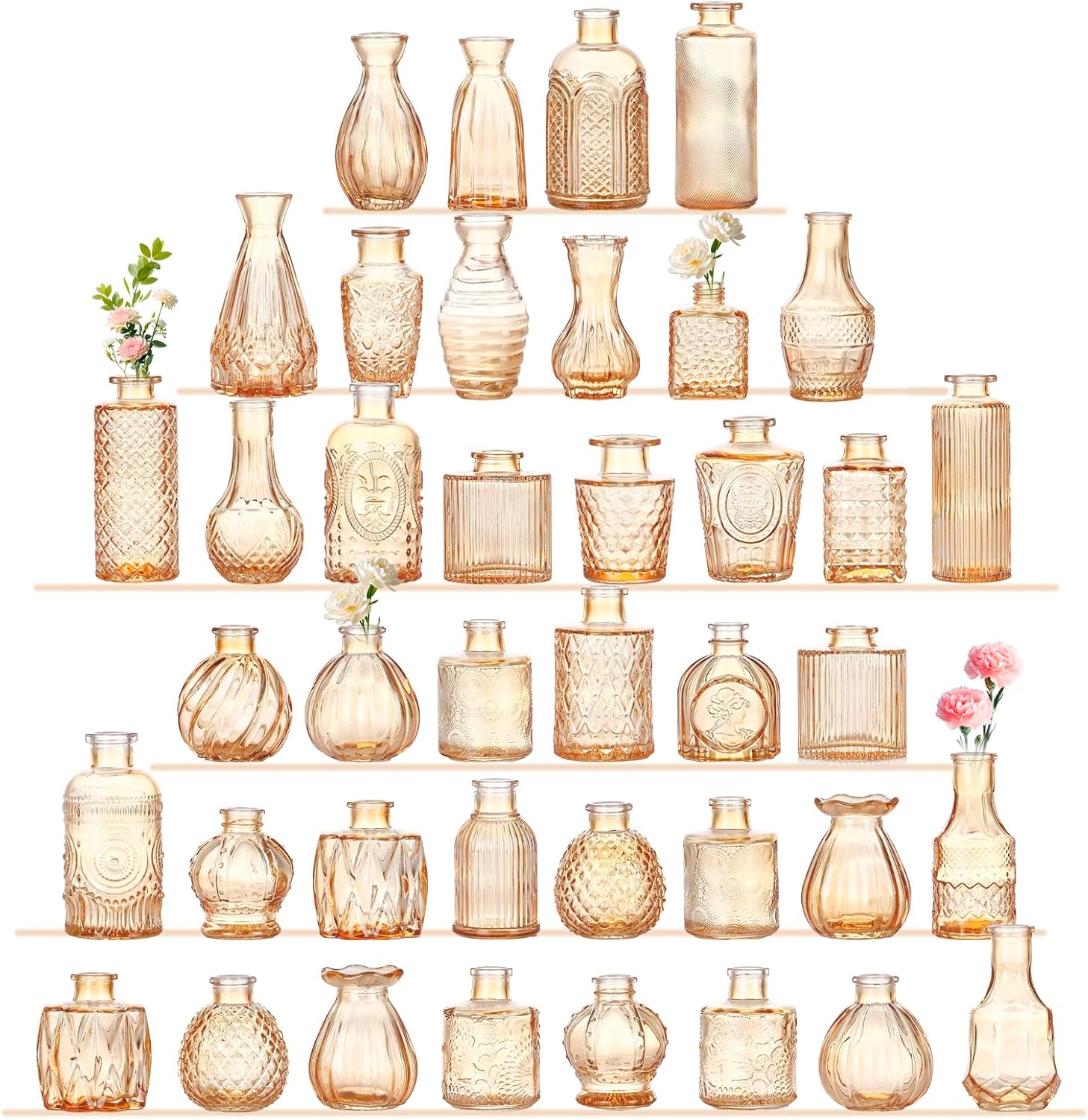 Bud Vases Set of 40 Pcs,Small Flower Vases for Centerpieces,Glass Bud Vase in Bulk,Vintage Bud Vase for Wedding Table Centerpieces Decoration, Home Table Party Decor, Christmas,Anniversary,Gold Amber