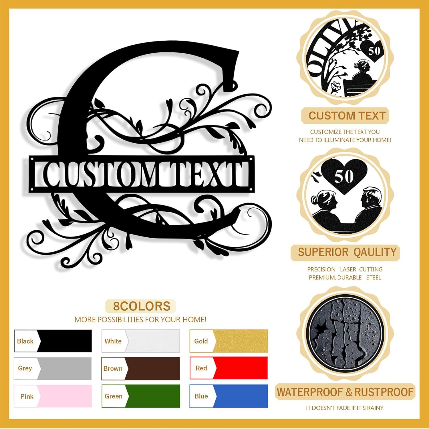 - Premium Quality Materials - Crafted from sturdy and durable steel, meticulously laser-cut for a precise shape and smooth, clean edges. These last name signs for home are built to last and finished with a weather-resistant powder coating that prevents fading, rust, and corrosion, ensuring lasting beauty both indoors and outdoors