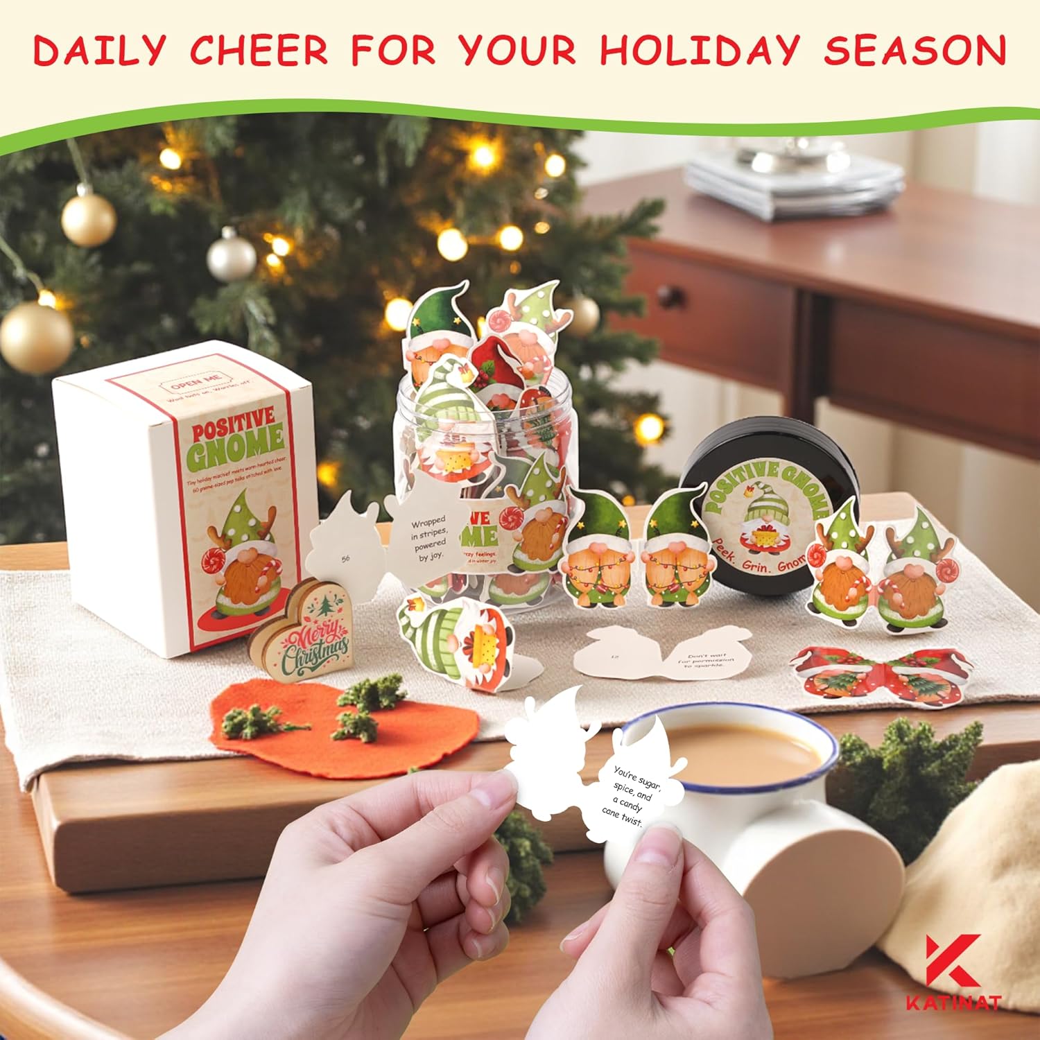 - 🎁 The Ultimate Feel-Good Gift This Positive Gnome Jar is packed with 60 cheerful notes to boost joy, ease stress & bring laughs—perfect christmas gifts for teens and women who need a holiday pick-me-up. Whether you’re looking for stocking stuffers for teen girls or stocking stuffers for women, this emotional support Gnome jar will brighten anyone’s day.